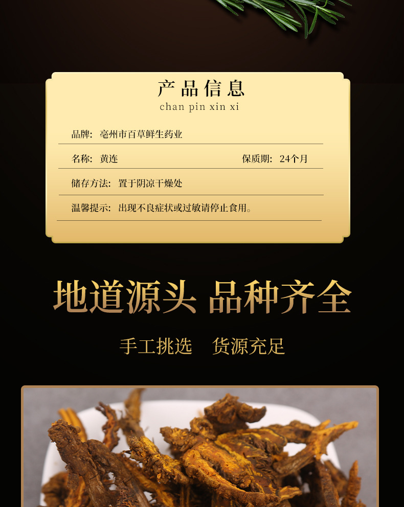 包装规格正品黄连单只连普通货100g,正品黄连单只连普通货250g,正品黄连单只连选装货250g,正品黄连单只连普最好货250g,正品黄连单只连普通货500g,正品黄连鸡爪连普通货100g,正品黄连鸡爪连普通货250g,正品黄连鸡爪连选装货250g,正品黄连鸡爪连最好货250g,正品黄连鸡爪连普通货500g