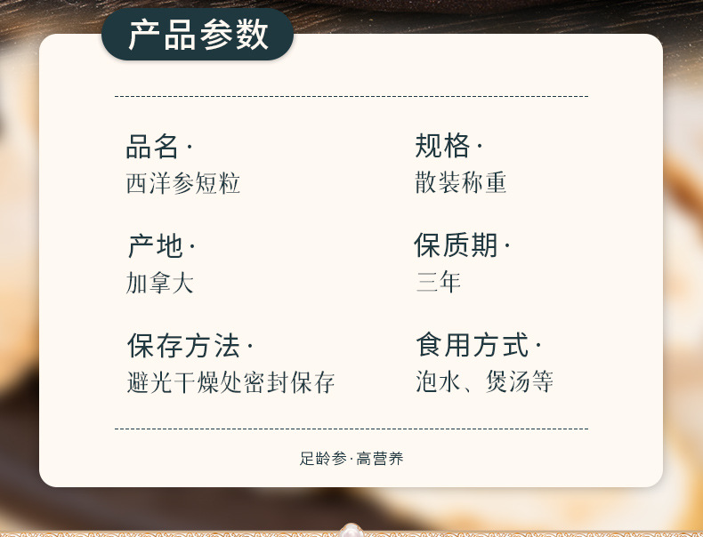 加拿大进口西洋参短粒足龄软支西洋参粒花旗参短粒滋补品散装批发