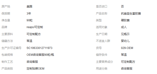 美国工厂跨境幽门杆菌片益生菌肠胃活性罗伊氏乳杆菌硬胶囊定制