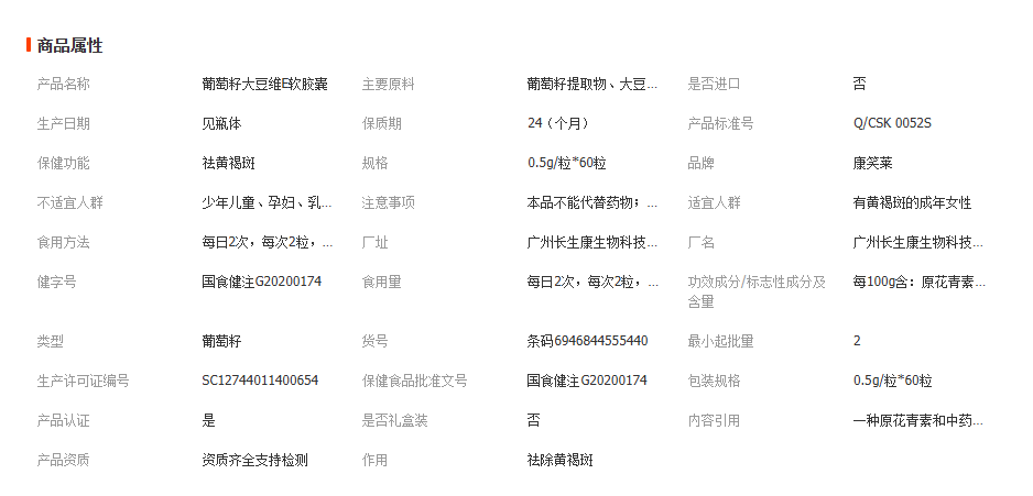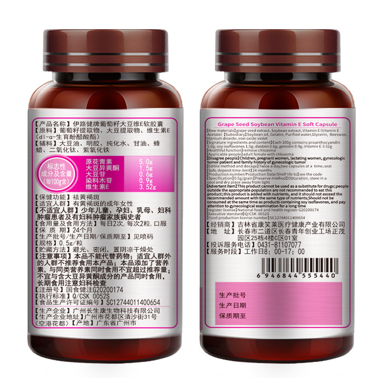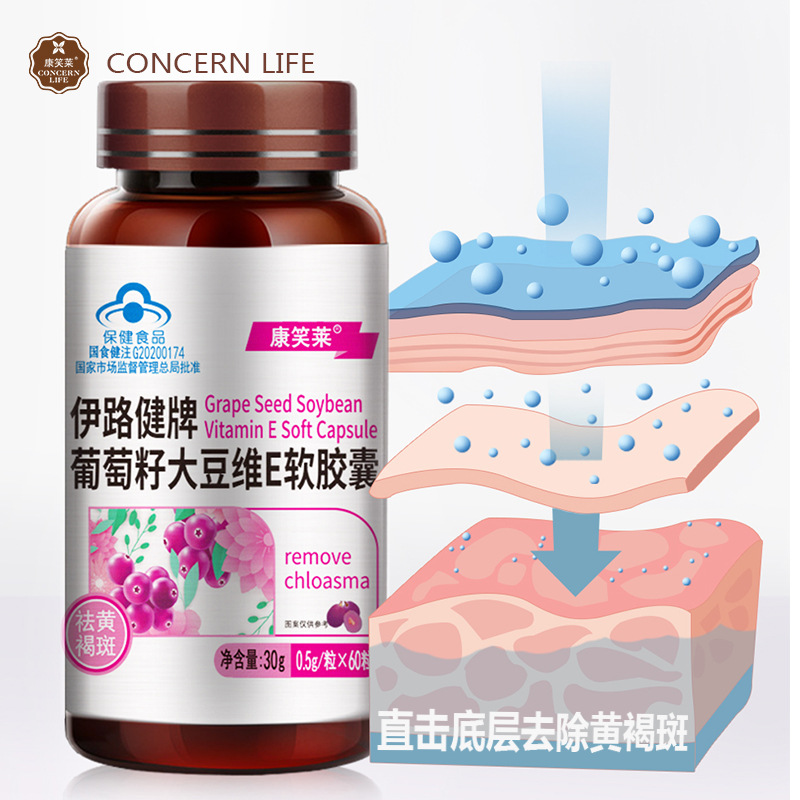 祛斑葡萄籽维E软胶囊60粒花青素祛黄褐斑可搭美容内调保健品代发