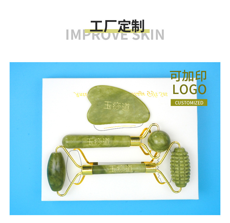 自然玉石滚轮脸部按摩美容棒双头玉现货批发眼部面部滚轮按摩器