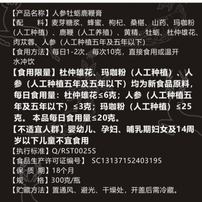 颐欣堂人参牡蛎鹿鞭膏300g/瓶 厂家现货一件代发
