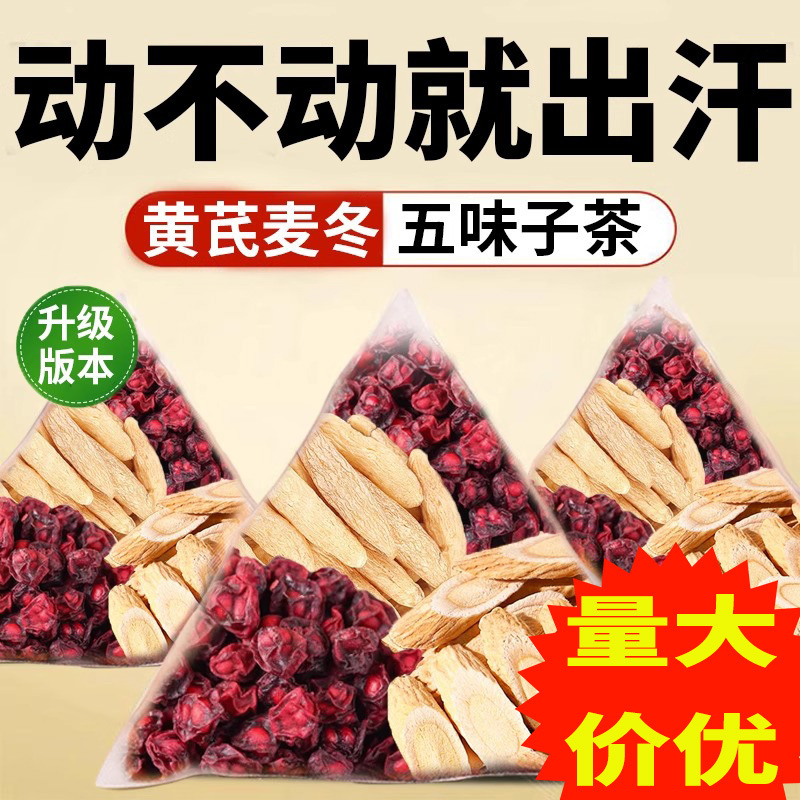 黄芪麦冬五味子茶叶正品茶包中式药材中老年出汗