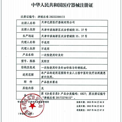 此款针灸针目前有两个厂家分别生产: 长春爱康医疗器械有限公司,