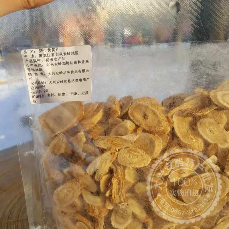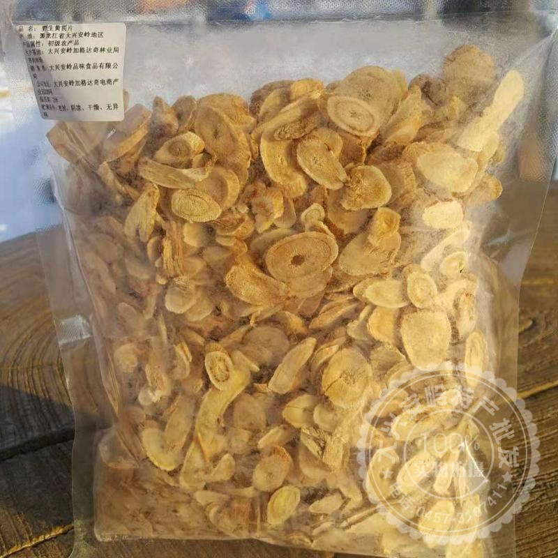 纯野生黄芪形状不规则,颜色发黑,上面粗下面细明显。有个大脑袋,每年发4个叉。头越大代表年头越多,本店的野生黄芪大都5-8年【如下图】养殖的黄芪生长期一般2-3年。形状规则,上下一般粗。颜色浅。本店黄芪纯手工切片,未经任何加工。回去洗净就可以用,黄芪味道浓。