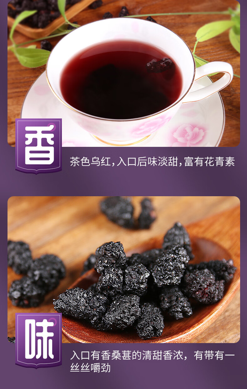 桑葚干500g新疆黑桑葚免洗无沙非特级桑果黑桑椹泡水泡茶桑葚果干