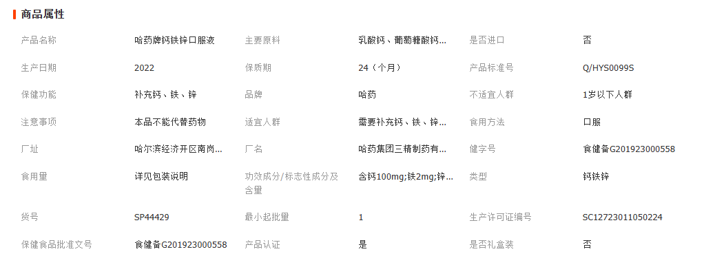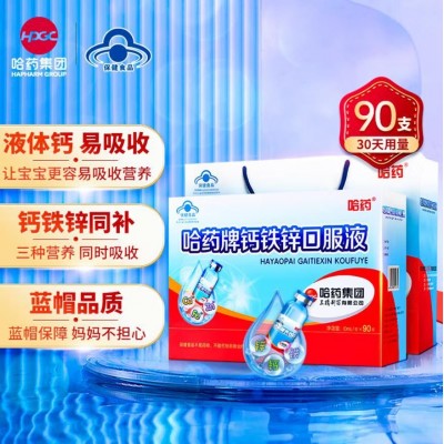 哈药牌钙铁锌口服液90支儿童成长补钙液体三精葡萄糖酸钙锌口服液