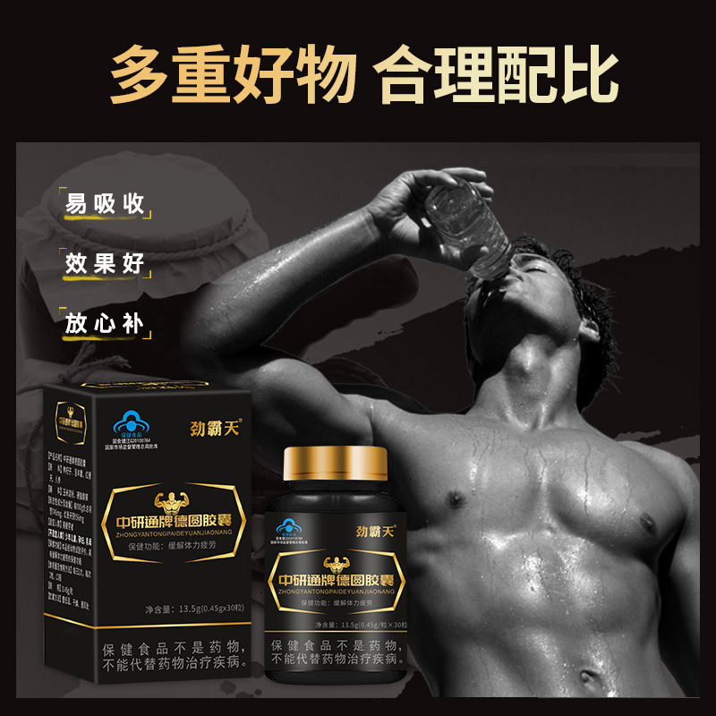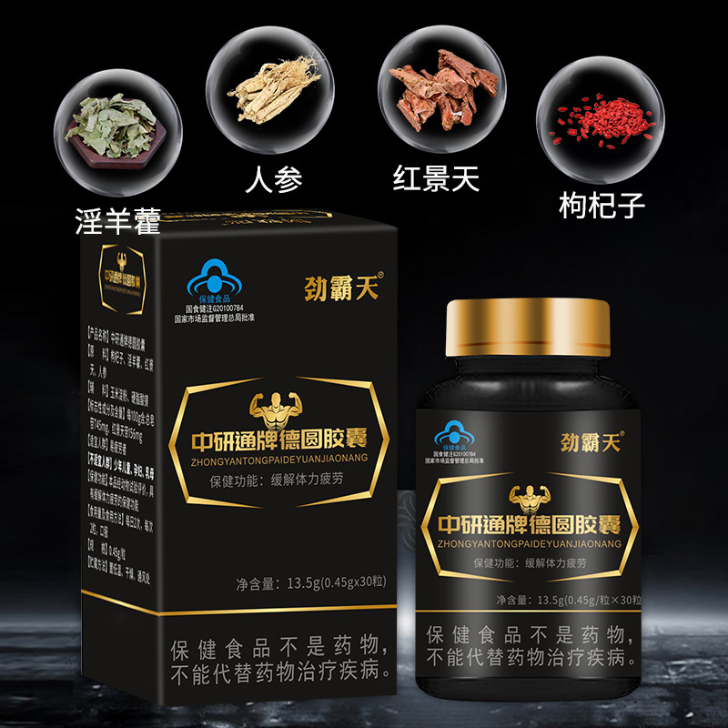 男性保健品 劲霸天中研通牌德圆胶囊缓解疲劳黑红胶囊蓝帽食品