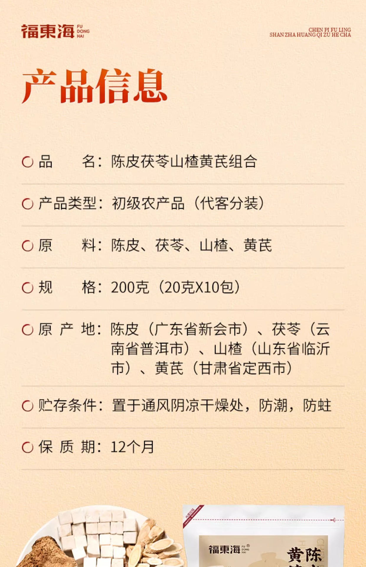 福东海陈皮茯苓山楂黄芪组合200g祛养生湿茶包办公室泡水批发代发