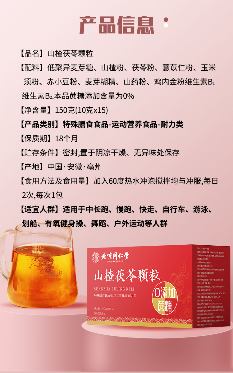 北京同仁堂山楂茯苓颗粒 150g/盒0添加蔗糖特膳正品工厂批发代发