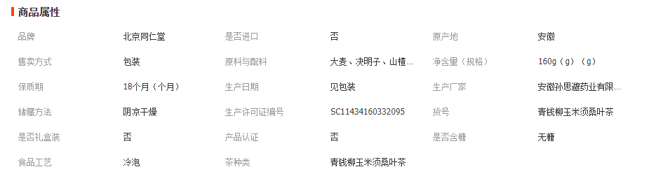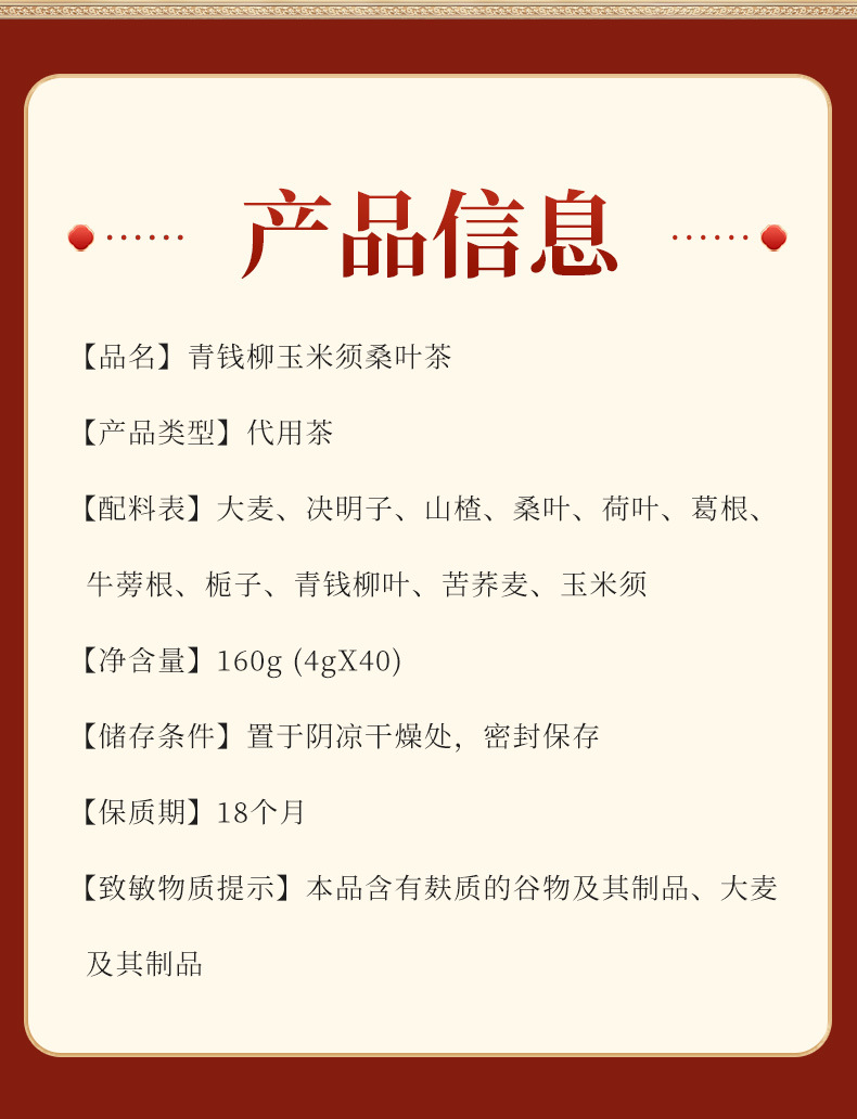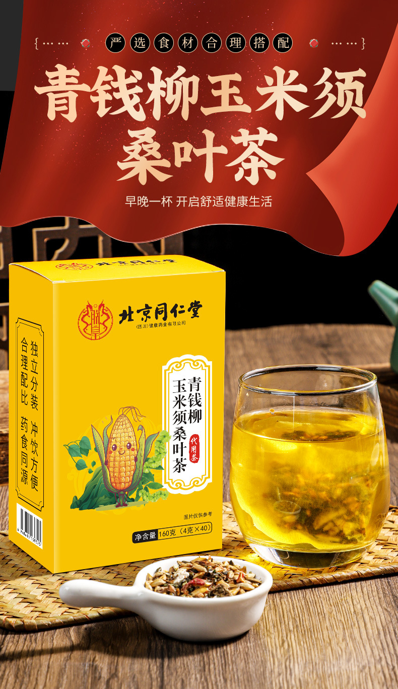 北京同仁堂青钱柳玉米须桑叶茶160g/盒葛根源头批发代发组合茶