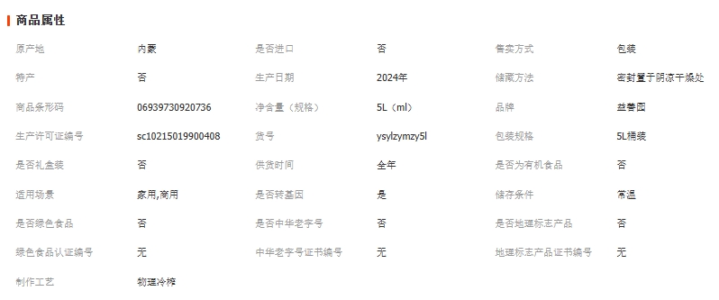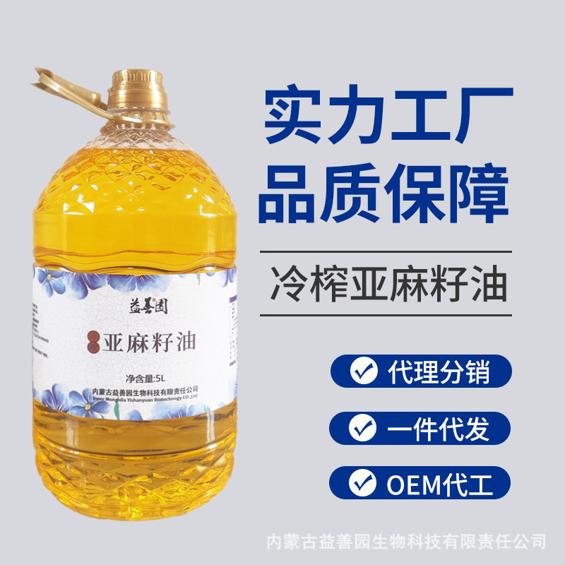 亚麻籽油冷榨食用油胡麻油内蒙古益善园5L桶装非有机食品级高油酸