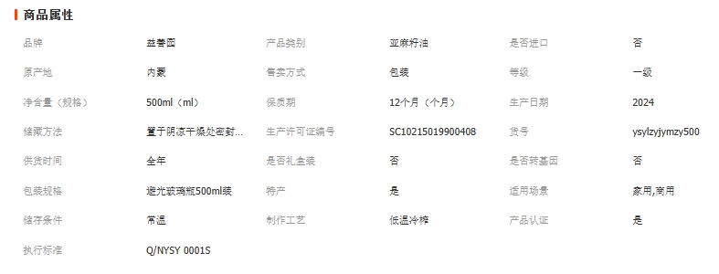 有机亚麻籽油一级冷榨食用油胡麻油内蒙古益善园500毫升非转基因