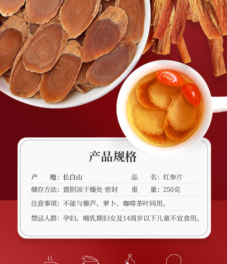 长白山红参片无糖红参大片现货批发足干散装东北特产滋补品煲汤