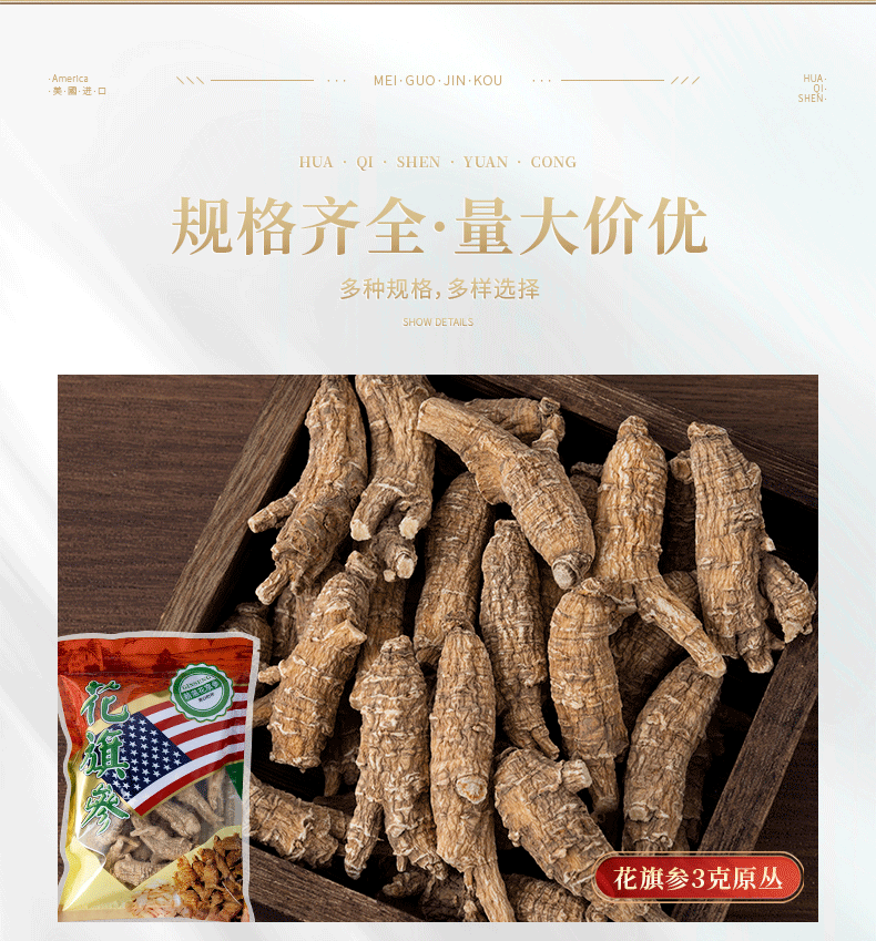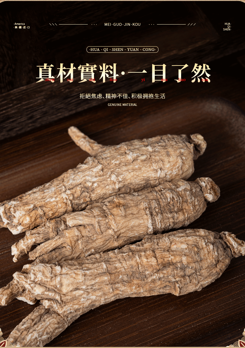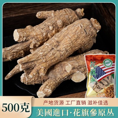 美国花旗参段500g袋装进口软质西洋参原丛可切片足齢足干花旗参段