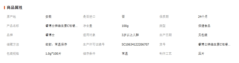 草珊瑚睿博士牌蓝帽维生素C咀嚼片甜橙味保健食品补充维生素C