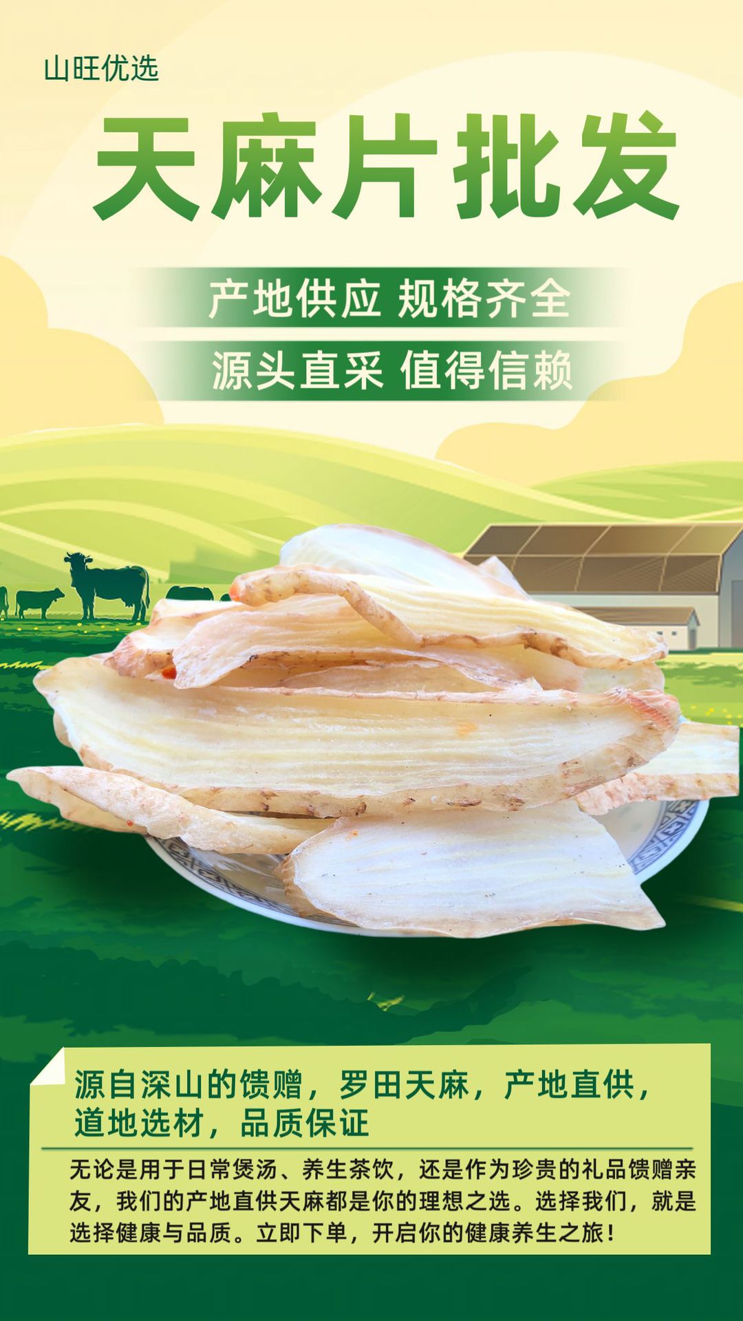 源头现货批发干货天麻片1000克中药材批发天麻片大货供应量大价优