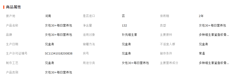 维生素 每日营养包女性营养补充剂复合维生素多种矿物质30+营养包