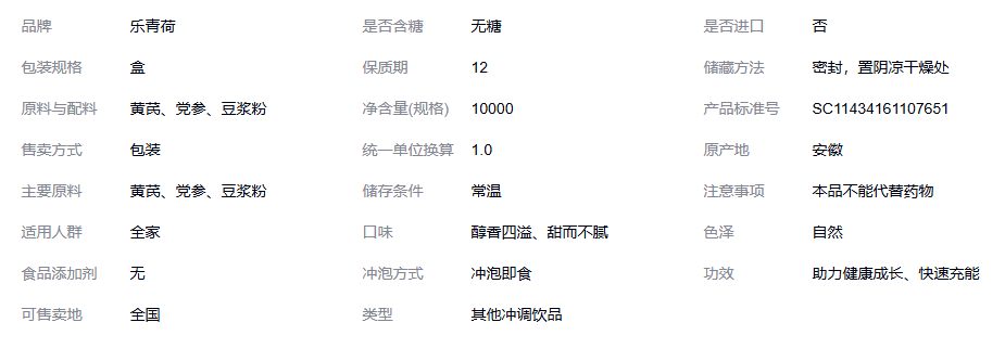 乐青荷品牌黄芪党参豆浆粉 盒装常温储藏 12个月保质期