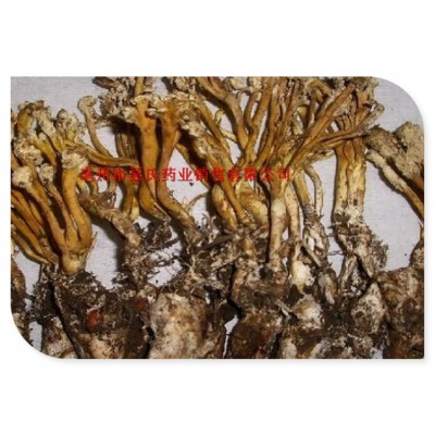 金蝉花,也称蝉菌、蝉蛹草,是一种具有动物和植物特征的生物。它的根是蝉蛹或山蝉的幼虫体,花是从单个或是2-3个蝉幼虫头部生长出来的,约一寸多长,从顶端开花分枝。子囊座单个或2-3个成束地从寄主体前端生出。长2.5-6cm,中空,其柄部呈肉桂色 ,干燥后呈深肉桂色,直径1.5-4mm,有时具有不孕的小分枝,其头部呈棒状 ,肉桂色,干燥后呈浅腐叶色,长7-28mm,直径2-7mm。子囊壳埋生在子囊座内,孔口稍突出,呈长卵形,约600μm×200μm。子长圆柱状,200-380μm×6-7μm。子囊孢子线形,具有多横分隔,后断裂成8-16μm×1-1.5μm大的单细胞节段。