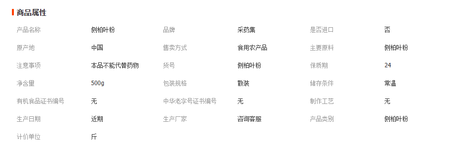 产品名称 品牌 是否进口 原产地 售卖方式 主要原料 注意事项 货号 保质期 净含量 包装规格 储存条件 有机食品证书编号 中华老字号证书编号 制作工艺 生产日期 生产厂家 产品类别 计价单位 商品描述