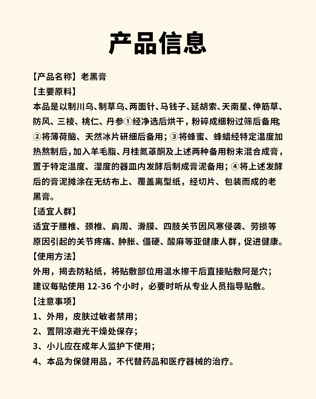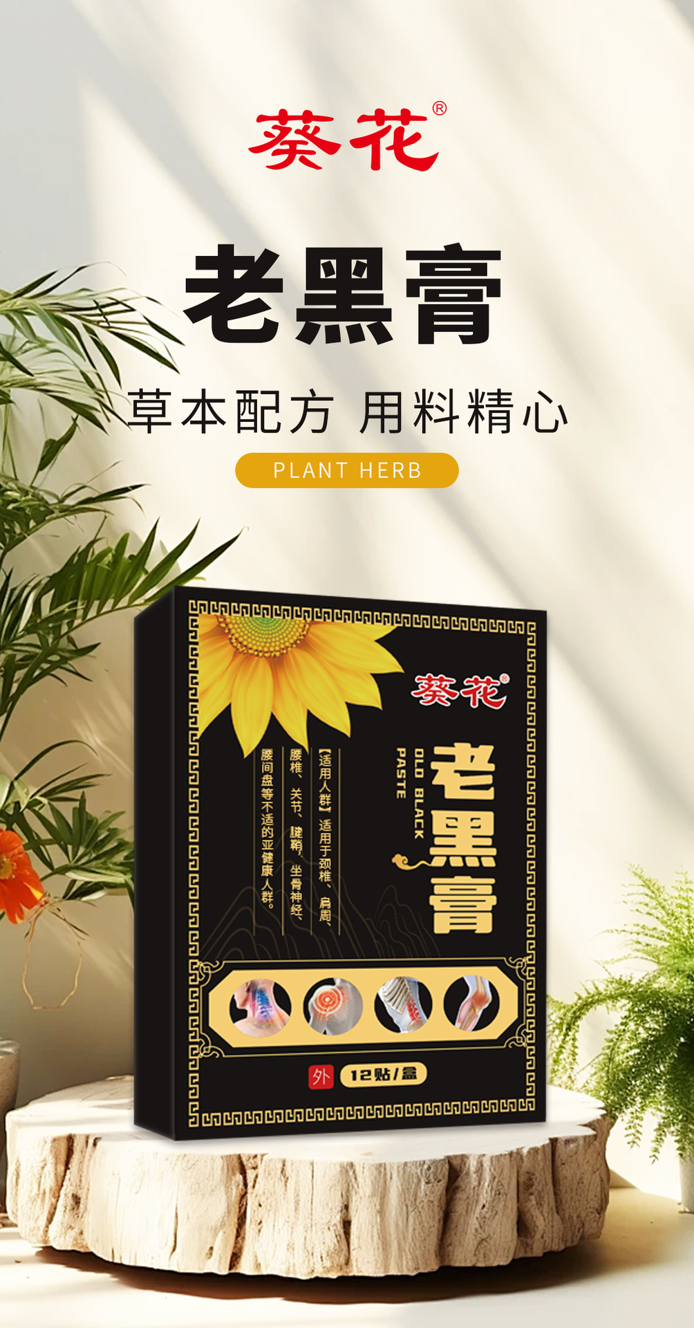 葵花老黑膏膏药贴颈肩腰腿膝关节腰椎艾灸贴艾草穴位贴手工黑膏贴