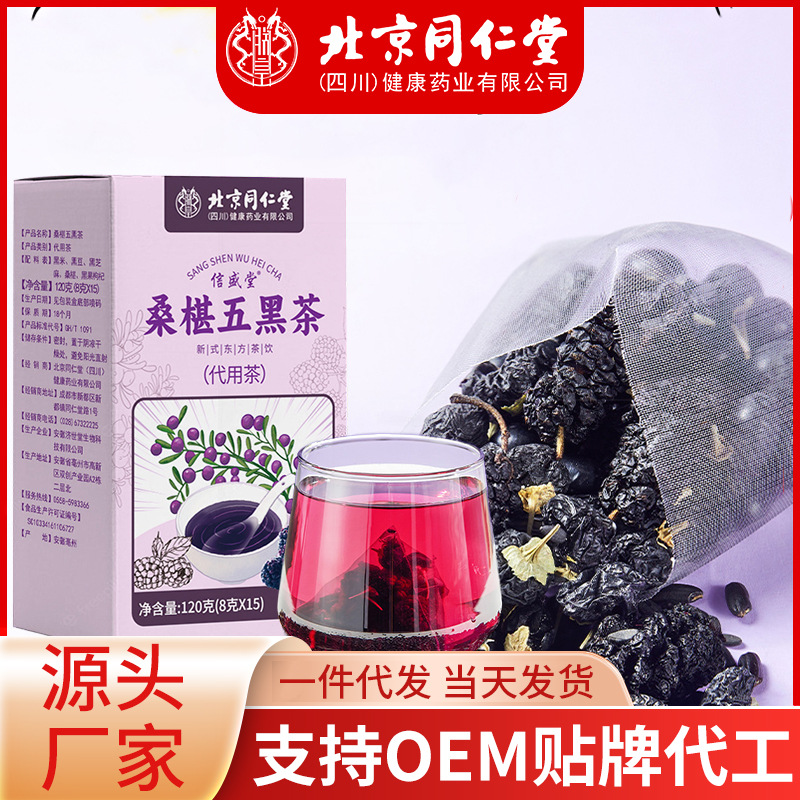 北京同仁堂桑葚五黑茶黑果枸杞花茶独立茶包亳州批发代发五黑茶