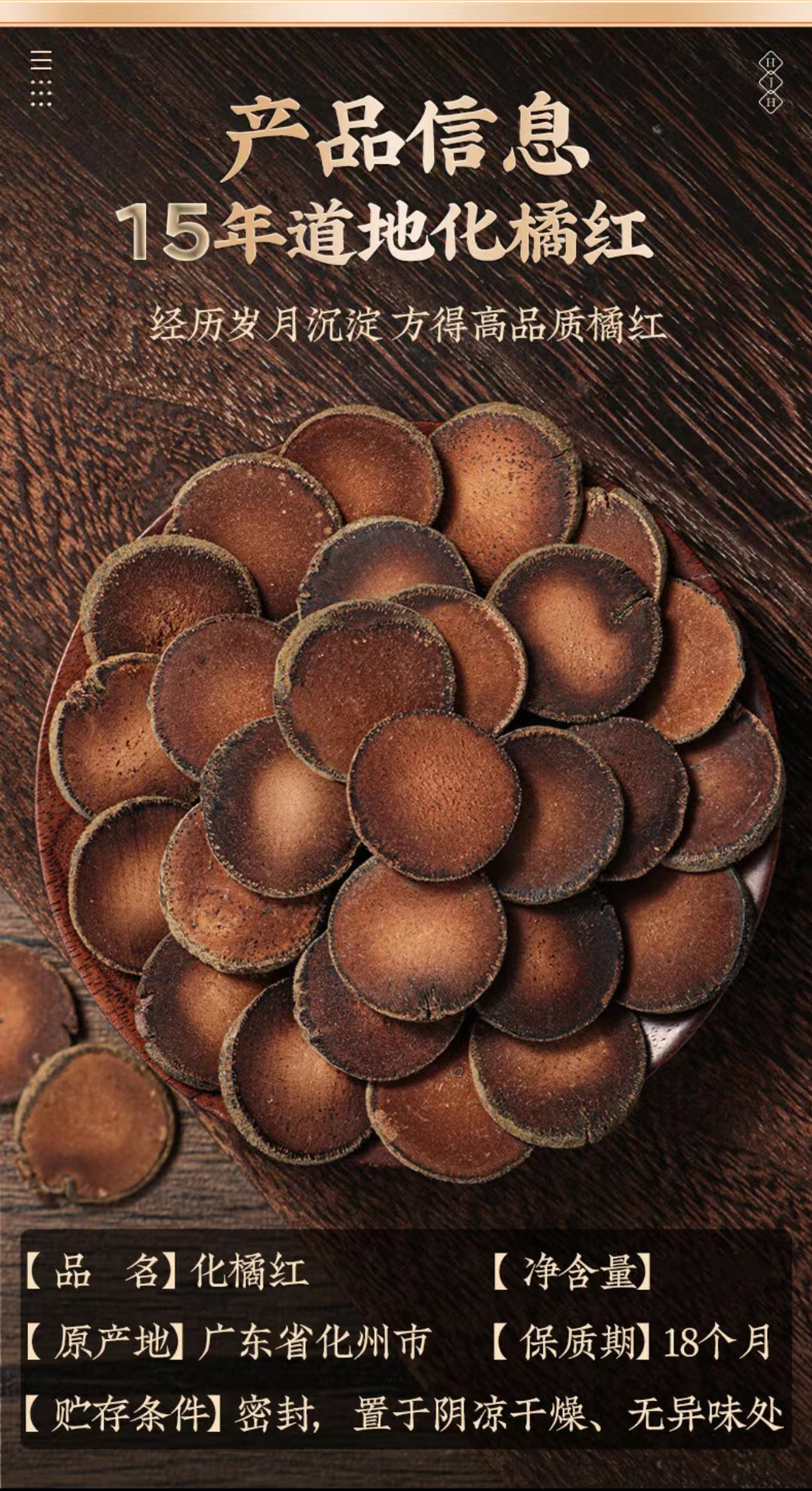 【化州橘红高品质20年陈片】直批中药材化橘红桔红茶工厂直供代发