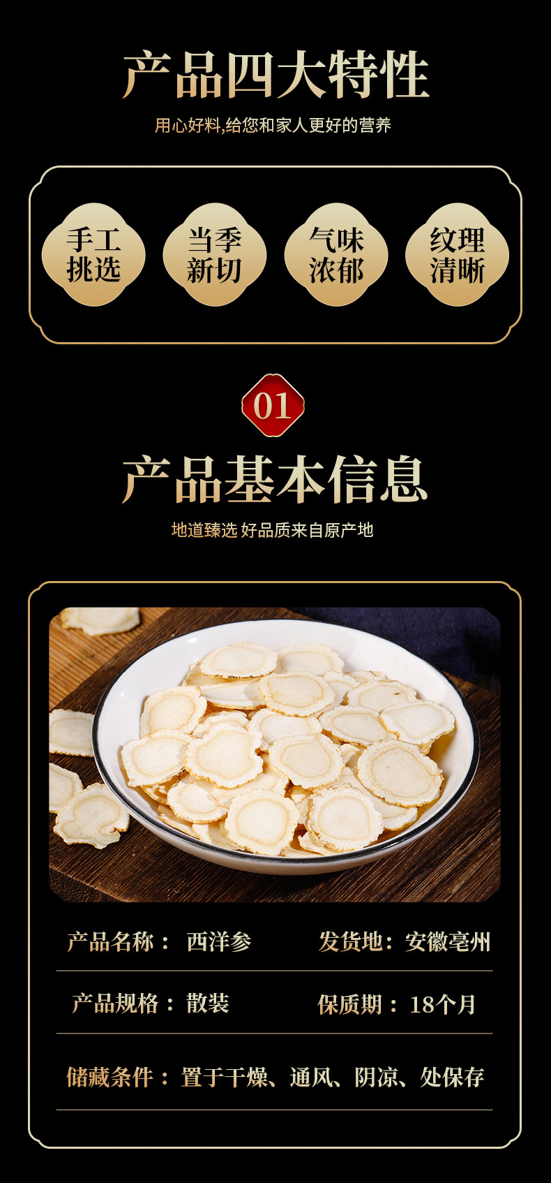 西洋参片足龄老参长白山软枝西洋参散批西洋参片泡水西洋参一斤装
