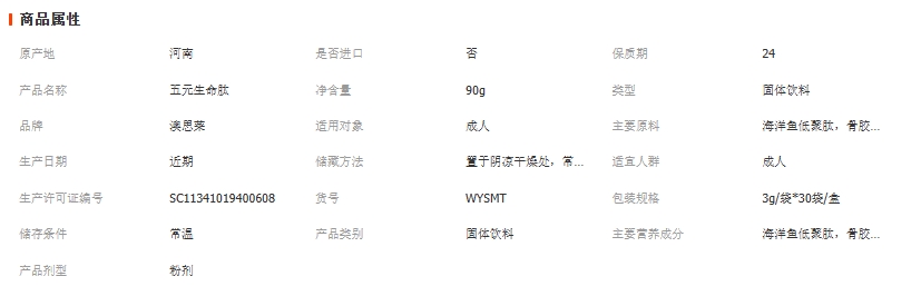 五元生命肽中老年营养小分子蛋白肽复合功能提高抵抗滋补品生命肽