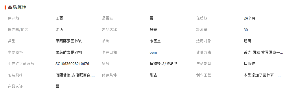 念医堂 果蔬酵素饮品 胶原蛋白 植物提取 可OEM贴牌