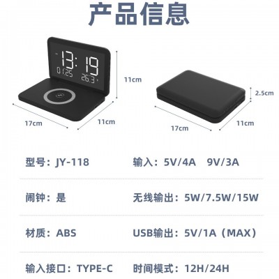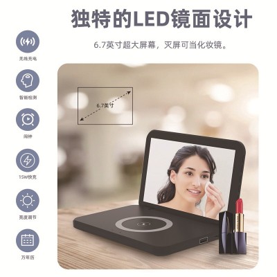 工厂批发跨境六合一翻盖无线充闹钟手机充电器镜子折叠无线充时钟
