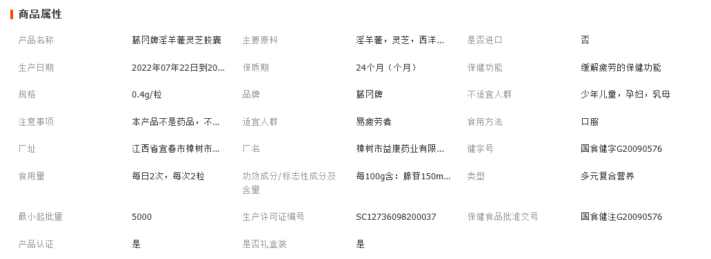 蓝帽 淫羊藿灵芝胶囊 藤冈牌胶囊保健品营养男性成人缓解体力疲劳