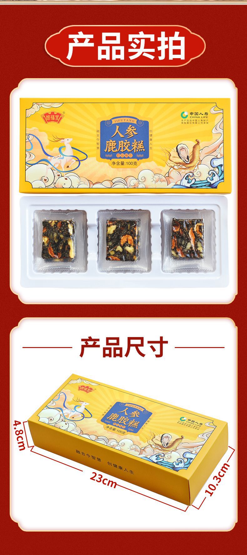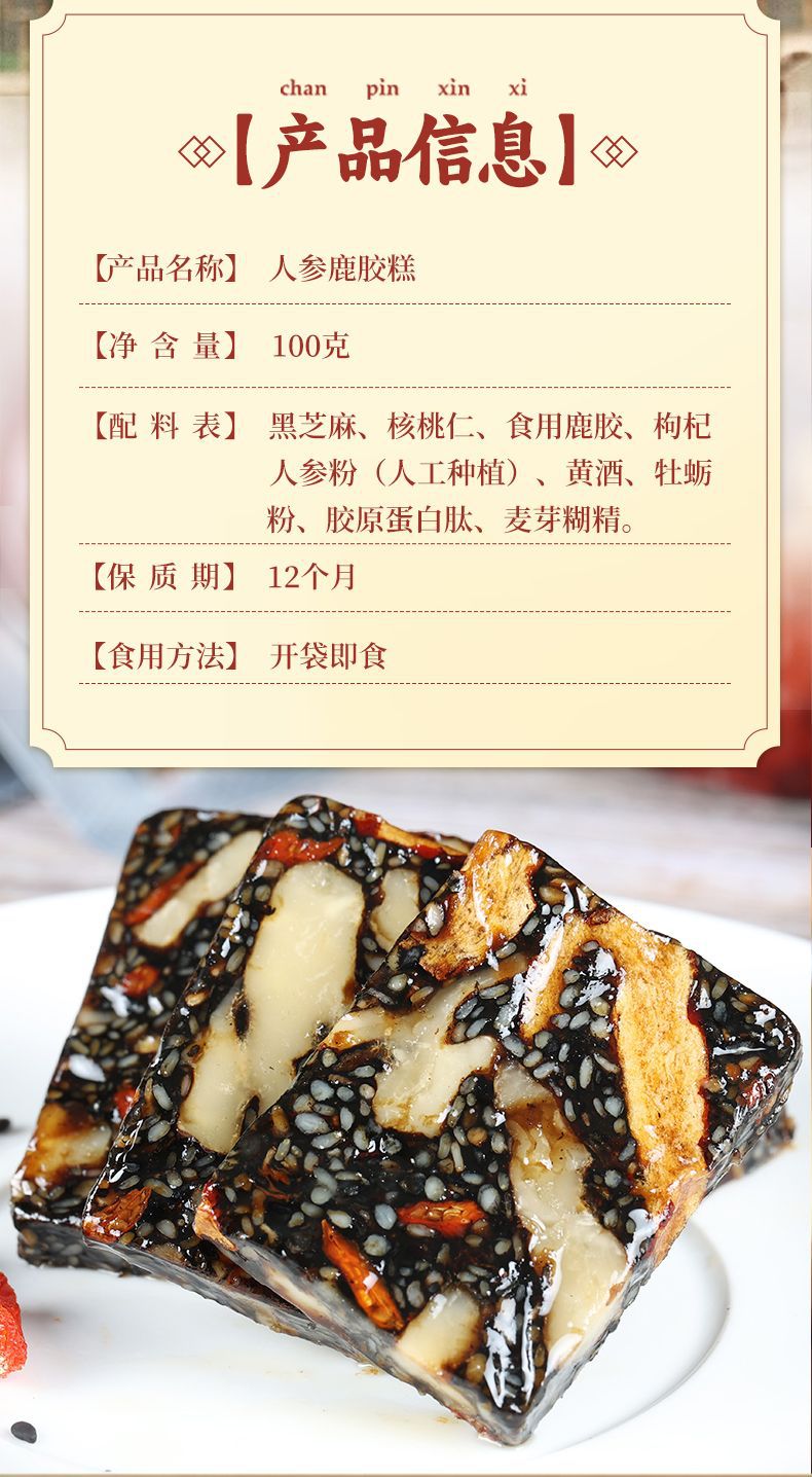 工厂人参鹿胶糕批发散装鹿胶膏精美铁盒装即食鹿胶糕