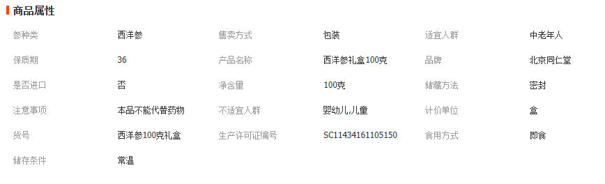 北京同仁堂内廷上用西洋参100克西洋参礼盒送礼佳品过年送礼长辈 1盒