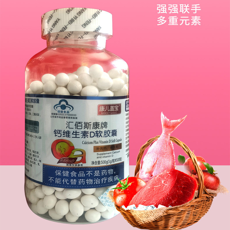 汇佰斯康钙加维生素D软胶囊液体钙500粒/瓶装一件代发 1瓶