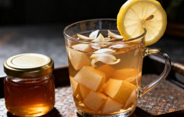 材料:雪梨 1 个(去皮切块)、干百合 5g、麦冬 3g、蜂蜜 1 勺(等茶凉一点再加,不然会破坏营养)