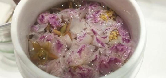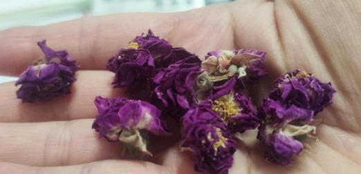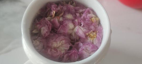我没想到的是,玫红玫红的它们,沾上开水后,竟然迅速褪去了靓丽的外表,变成了淡得不能再淡的淡粉色。这要不是我亲手采摘晾晒的,我都怀疑是不是染色的,掉色那么迅速且彻底。