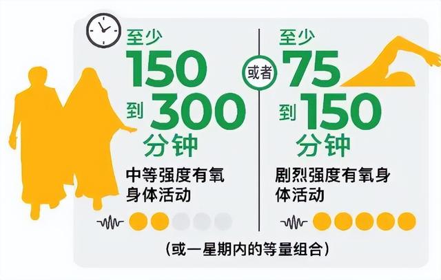 世卫组织建议,老年人每周应进行至少150-300分钟的中等强度有氧运动;或至少75-150分钟的较高强度有氧运动;或等量的中等强度和剧烈强度组合活动。