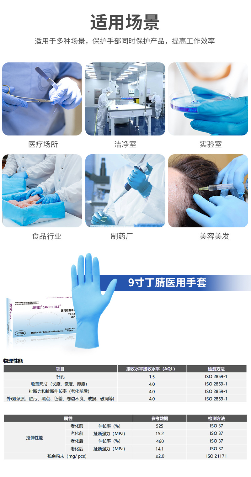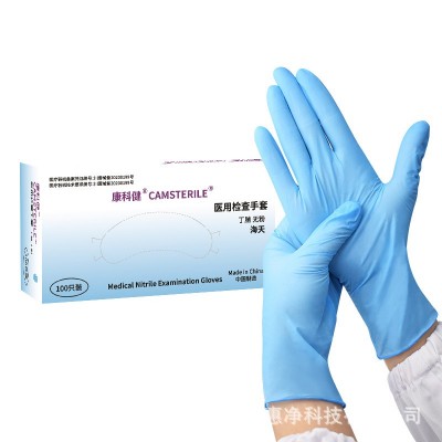 康科健 9寸医用丁腈检查手套耐磨防滑实验牙科医院丁晴检 查手套