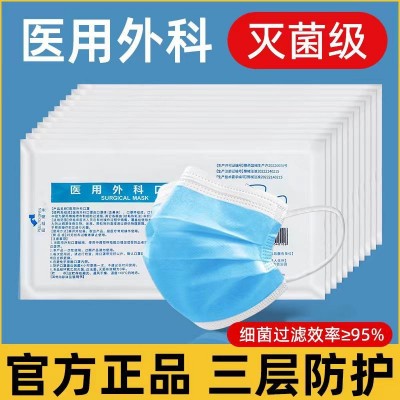 一次性医用外科口罩医用级灭菌独立包装三层防护成人口罩工厂批发