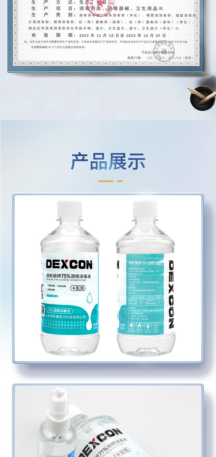 德新康医用75%酒精消毒液喷雾皮肤伤口杀菌家用环境消毒75度乙醇