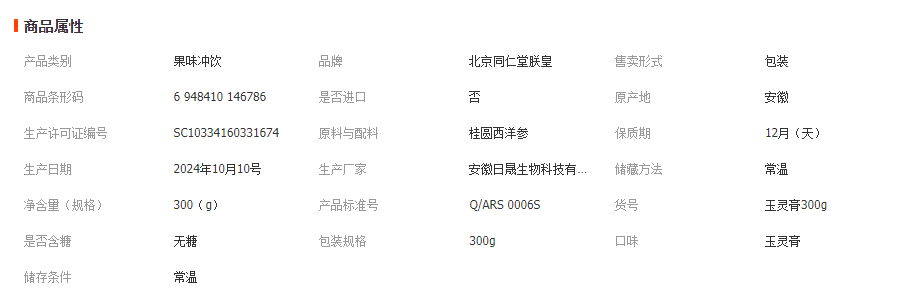 北京同仁堂TRT正品 玉灵膏 桂圆西洋参北京同仁堂草本正品批发