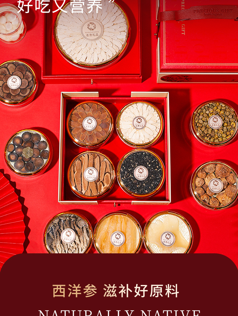 西洋参补品节日礼送父母长辈见家长补养生礼盒滋补五拼高档礼盒
