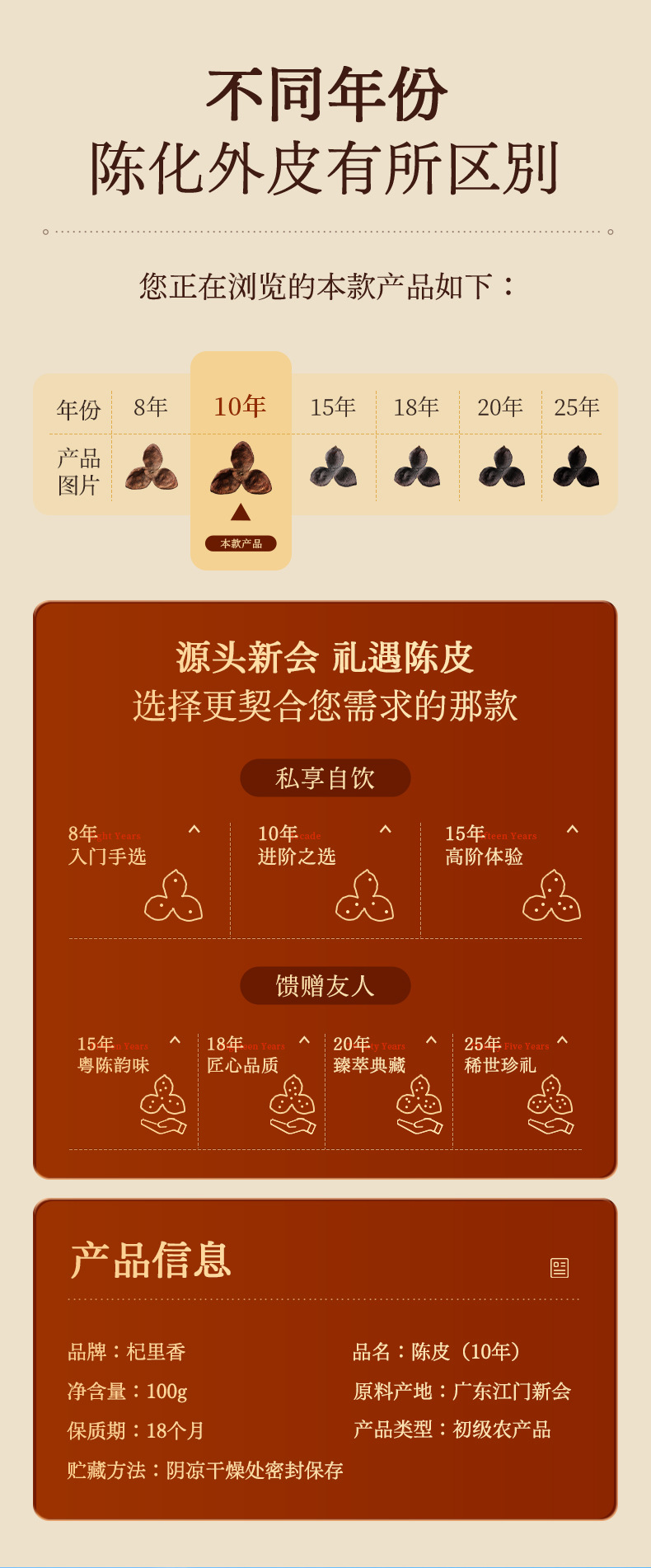 杞里香新会老陈皮茶铁盒100g装 十年新会老陈皮干新皮江门橘子皮