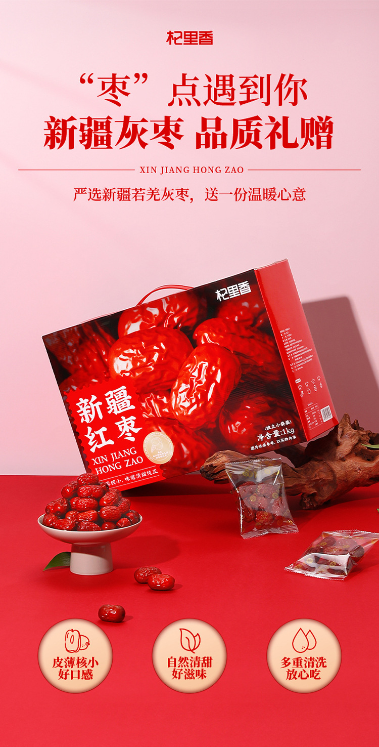 杞里香新疆特产红枣1kg年货礼盒 大枣若羌灰枣红枣干泡茶煲汤批发