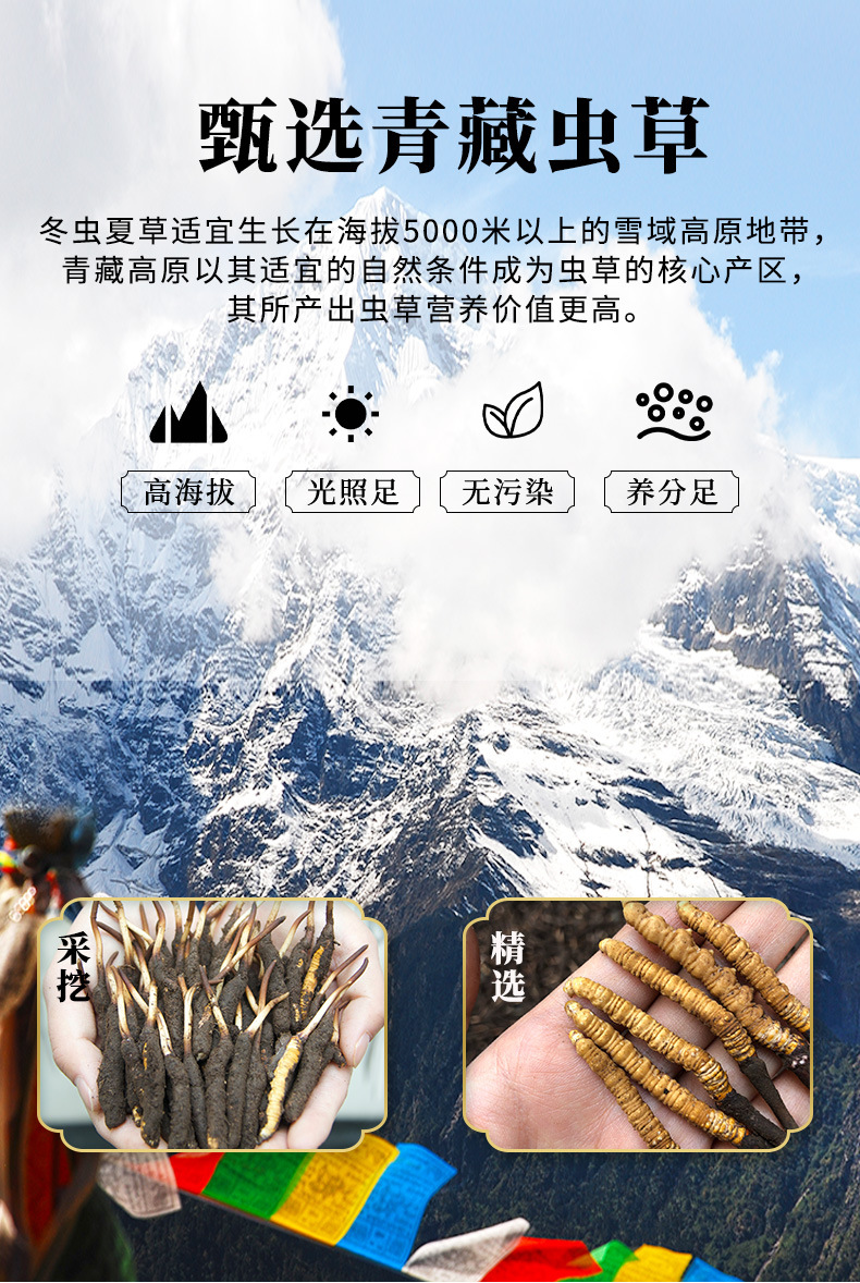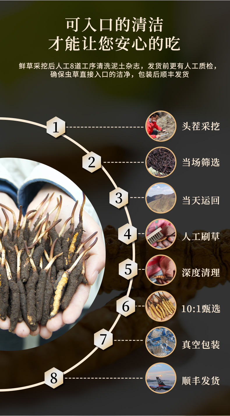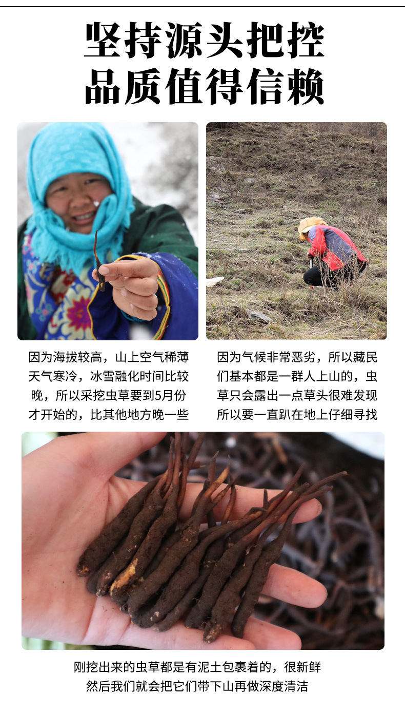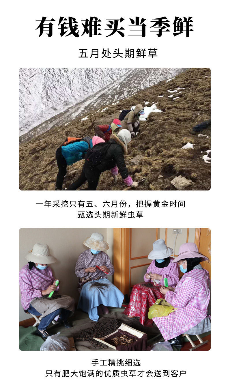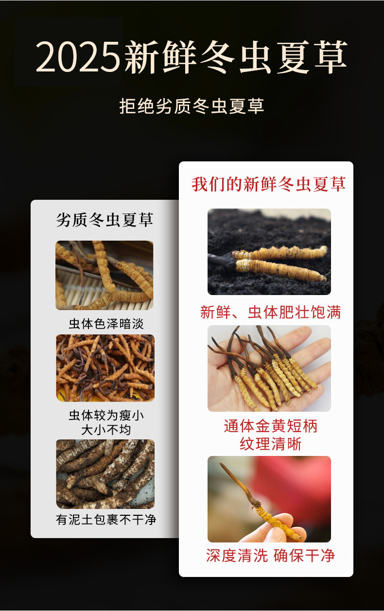 2025头期青海果洛玉树新鲜冬虫夏草产地直发手工干刷鲜虫草批发
