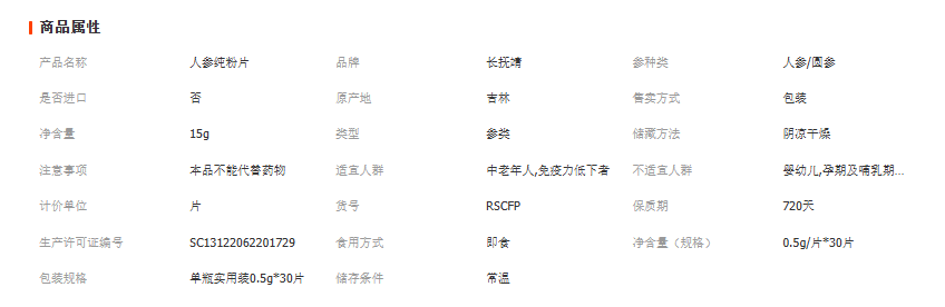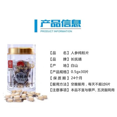 吉林长白山 人参纯粉片 rh2护命素Rg3人参皂甙片 0.5g/片*30片/