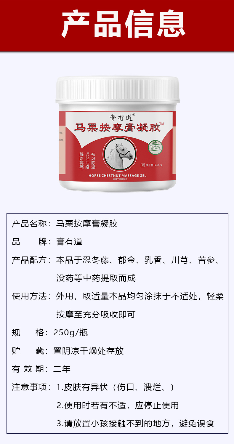 膏有道马栗活络按摩凝胶电商直播关节肩颈腰椎腿批发马膏