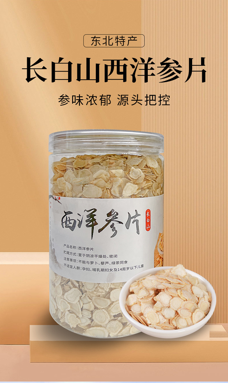 长白山西洋参片厂家批发量大价优规格齐全泡水煲汤西洋参片批发